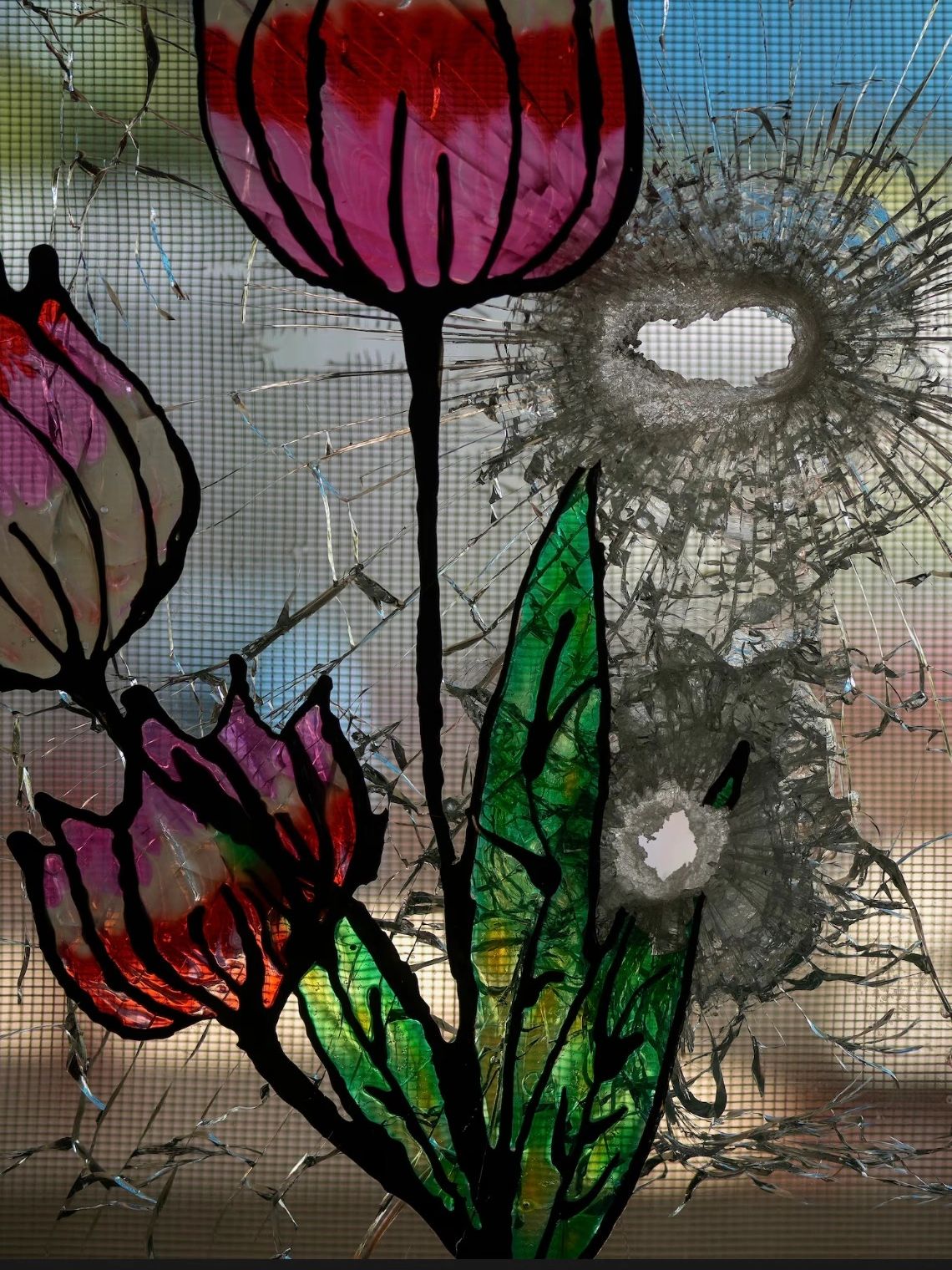 Bullet holes show through the window of a kindergarten in Kibbutz Be'eri, one of the communities attacked by Hamas. What Hamas did was a crime even in war; Israel's retaliation has been in (OT) kind. Shameless hardline people all around feeding off each other.