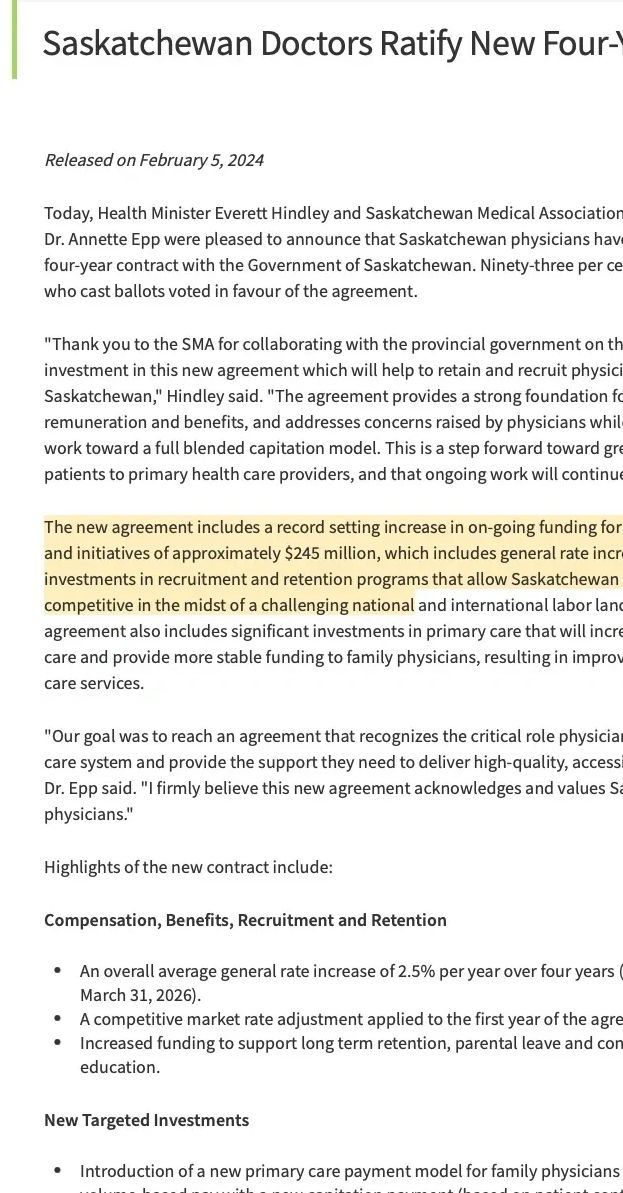 Well, labour peace with our doctors at least. But I'm sure they're not happy either. Who ever is? Now come teachers, health care workers, and other public servants. Trouble for a Sask Party determined to keep the required public revenues water hole small.