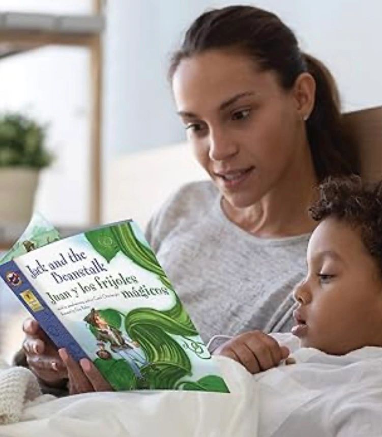 Mother: And Jack climbed up the beanstalk to a place where everything was bigger than anywhere else ... Son: Costco?